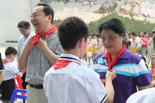 孩子們?yōu)榧钨e系上紅領(lǐng)巾